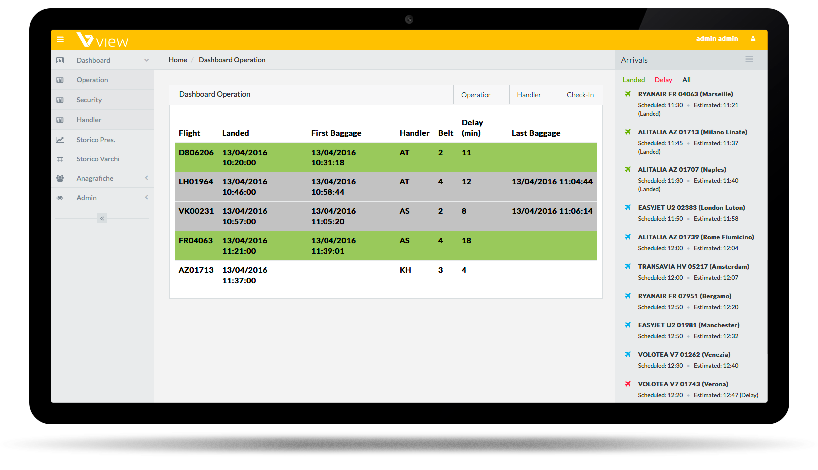 VIEW monitora centralmente i principali KPI dello scalo garantendo un continuo miglioramento del livello qualitativo dei servizi.
